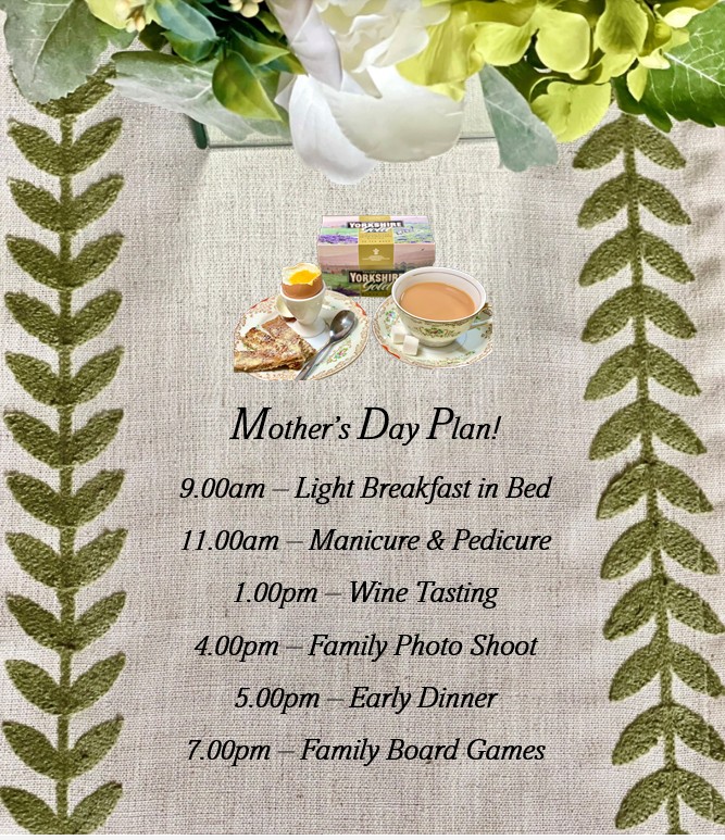 LET’S MAKE A PLAN! This is the day to make our loved ones feel special and pampered. Plan the day with everything that your Mother or loved one really enjoys. Make your own schedule and follow it with your loved one. Equally, you can make everything a surprise! The ideas are endless from a SPA Day, Golf, Jewelry Making, Picnic, Botanical Garden visit…